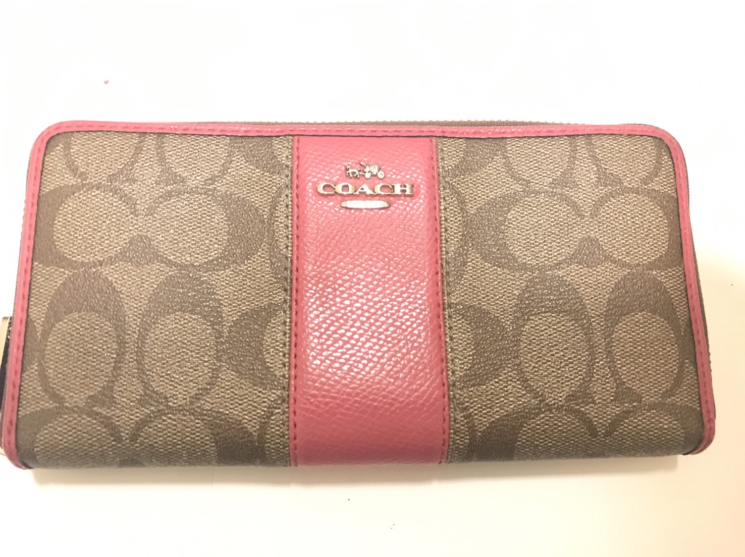 今回、買取したのはコーチ ラウンドファスナー 長財布 シグネチャー F52859です。