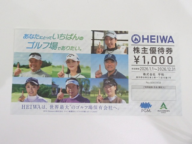 今回お売りいただきましたのは、株式会社 平和の株主優待券、になります。